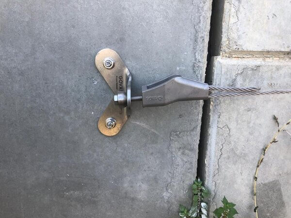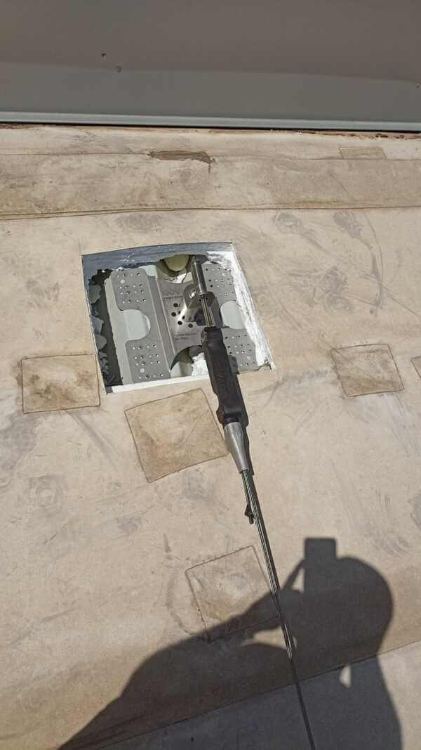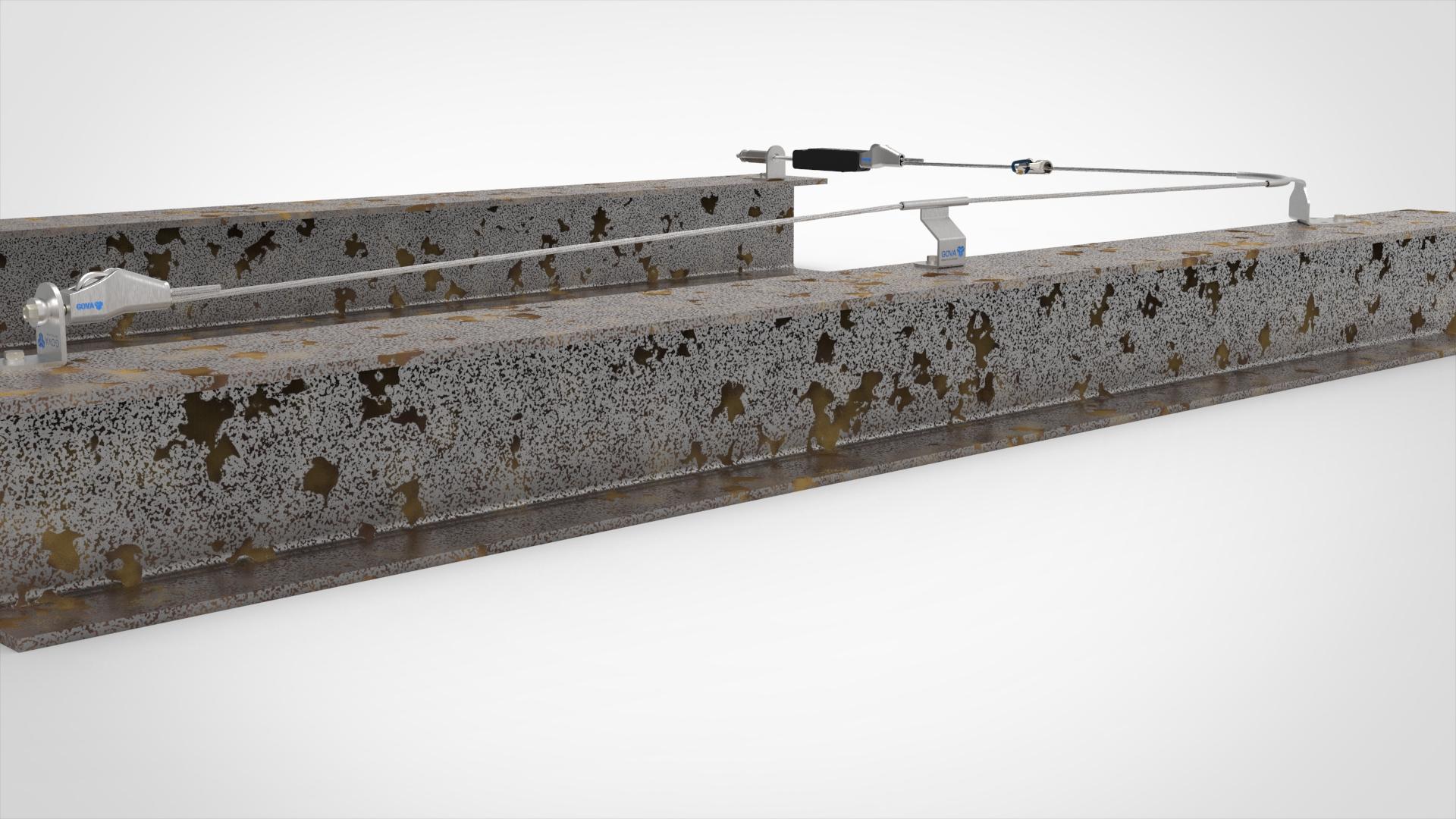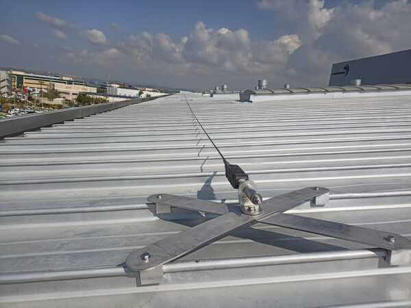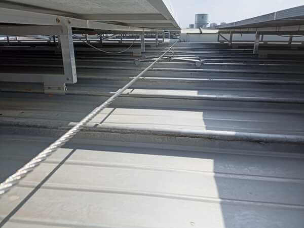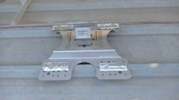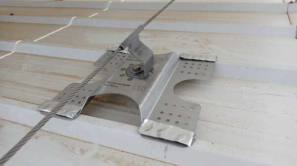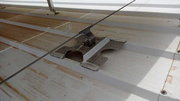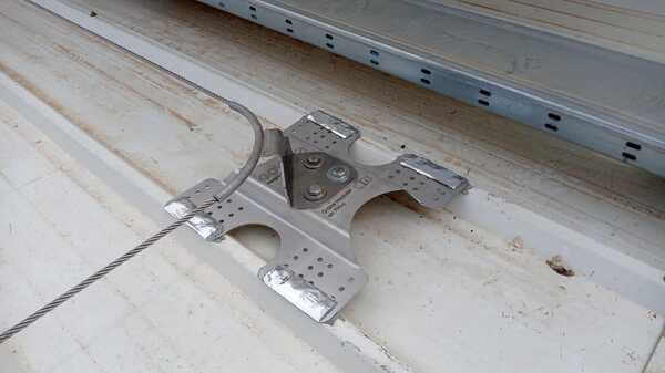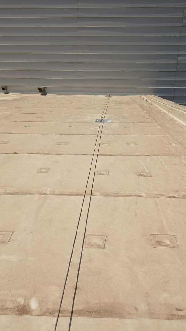 The lifeline system consists of anchor points bolted to the roof surface, an 8 mm thick steel cable, and trolleys that allow the movement of one or more individuals along the line. The anchors have been tested under the most stringent laboratory conditions in the world and have been found to withstand particularly high loads.